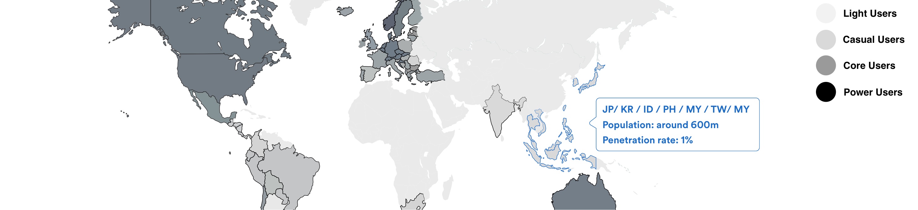 Most users in this region use our service casually compared to Europe, the US and Australia, and the penetration rate is low. With knowing that our core value might not align to the needs of the target audience, we want to learn more and seek solutions for improving user engagement.